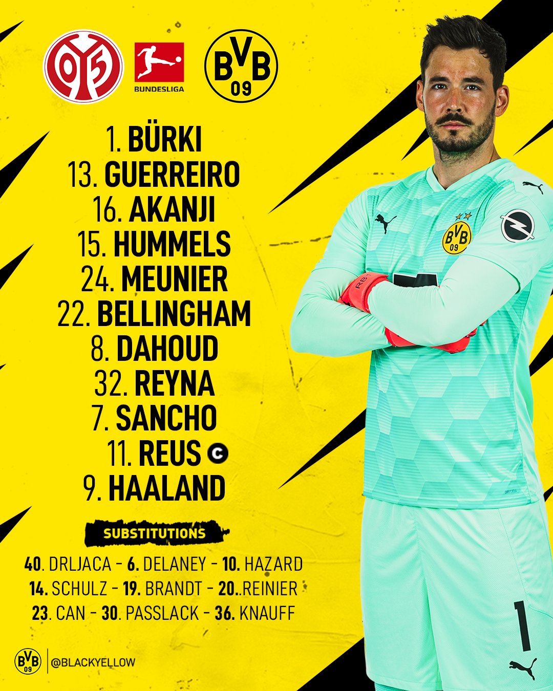 零点吧足球5月16日讯 德甲第33轮,多特蒙德客场对阵美因茨。目前多特已经公布了本场比赛球队的首发阵容。