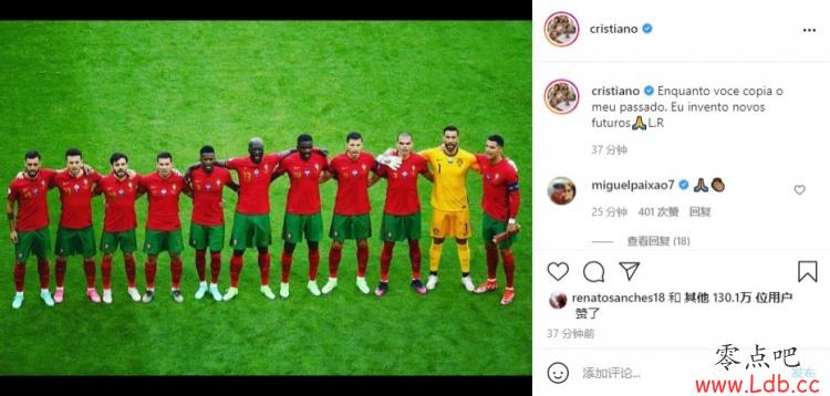零点吧足球6月21日讯 C罗今日更新了个人Instagram。他晒出葡萄牙国家队集体照,并配文到:当你复制我的过去,我已经创造了新的未来??