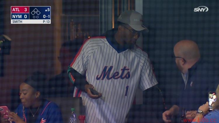 零点吧6月23日讯 今天,爵士球星米切尔身穿大都会球衣现身纽约花旗球场,观看MLB常规赛——纽约大都会主场迎战亚特兰大勇士。