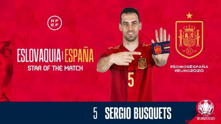 复出即最佳!布斯克茨当选西班牙5-0斯洛伐克全场最佳球员
