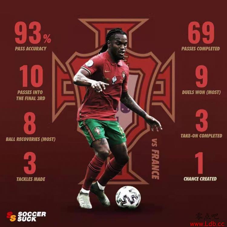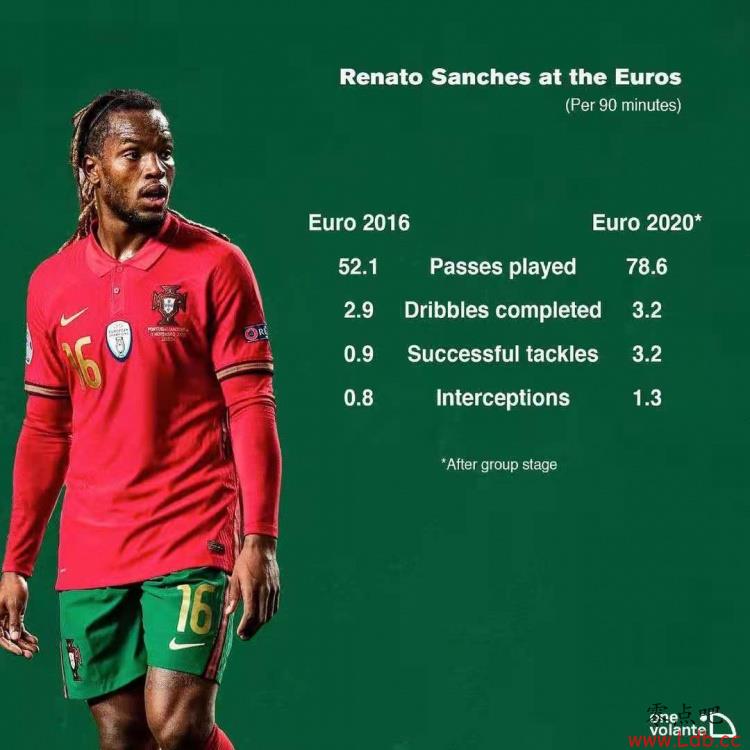 葡萄牙人有惊无险地从死亡之组突围,而面对坎特和博格巴这对国家队层面最恐怖的中场搭档,雷纳托-桑谢斯交出的答卷如下:传球成功率93%,成功拦截3次,8次夺回球权和9次赢得对抗的数据均为全场最高。