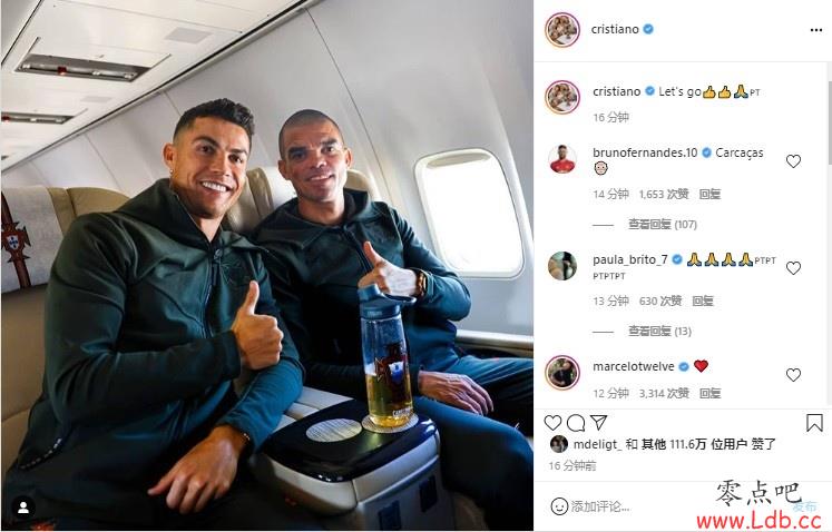 零点吧足球6月26日讯 C罗今日更新了个人社交媒体,晒出了和队友佩佩的合影,并配文:冲鸭!葡萄牙!??????