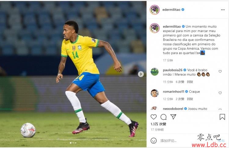 零点吧足球6月28日讯 在此前结束的美洲杯小组赛B组第5轮比赛中,巴西1-1战平厄瓜多尔,米利唐斩获国家队生涯首球。