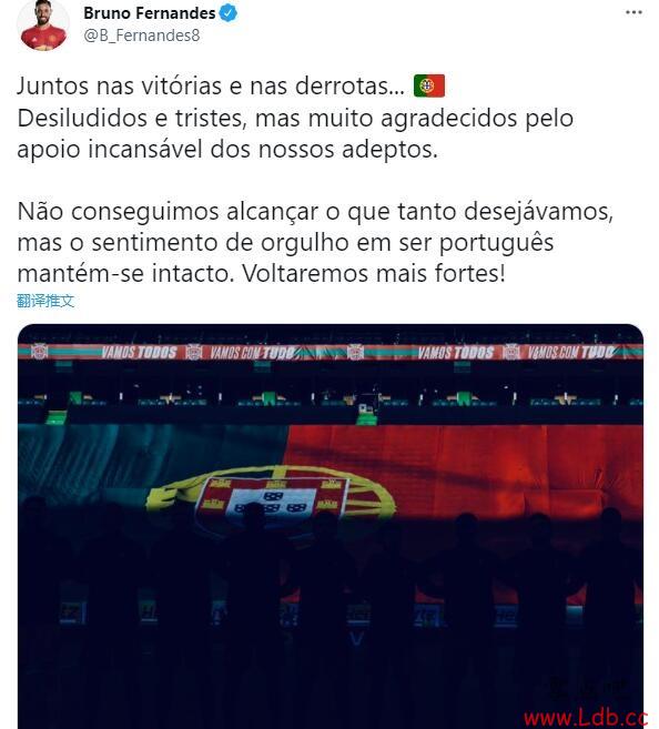 “我们没有实现想要的目标,但依旧十分骄傲能够代表葡萄牙队出战,球队会以更强的姿态回归!”