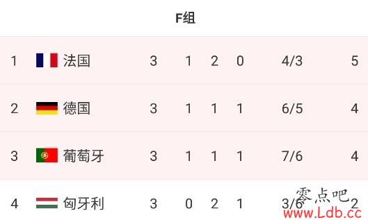 零点吧足球6月30日讯 欧洲杯8强出炉,A-E组皆有球队晋级8强,只有死亡之组F组没有球队晋级8强。