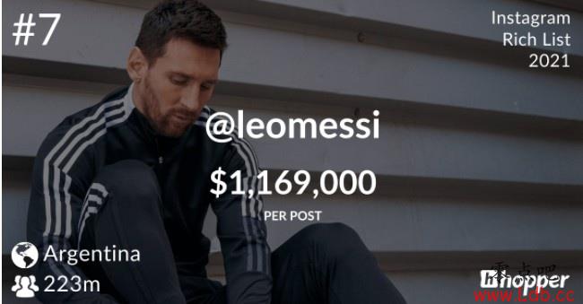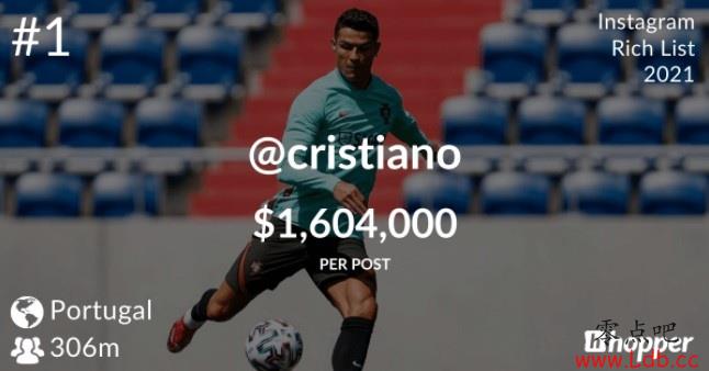 零点吧足球7月1日讯 近日,Instagram分析网站"Hopper"统计出了2021年通过每条ins动态可赚取收入最多的前十位明星。