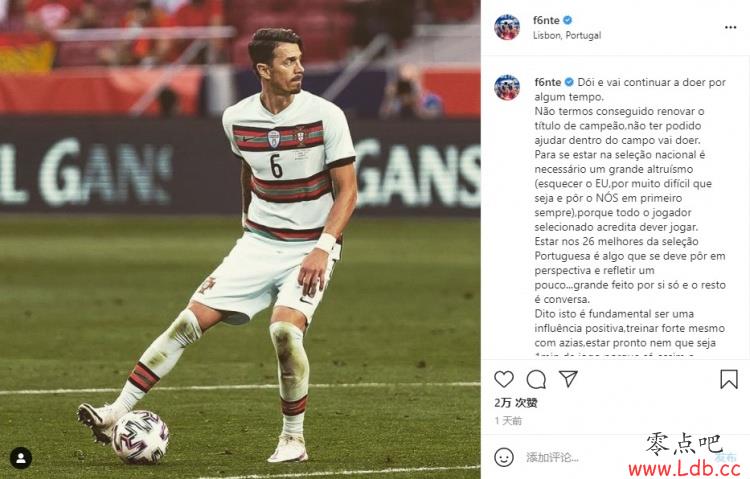 零点吧足球7月1日讯 葡萄牙国脚冯特更新INS动态,球员发布长文谈到了此次欧洲杯失利。