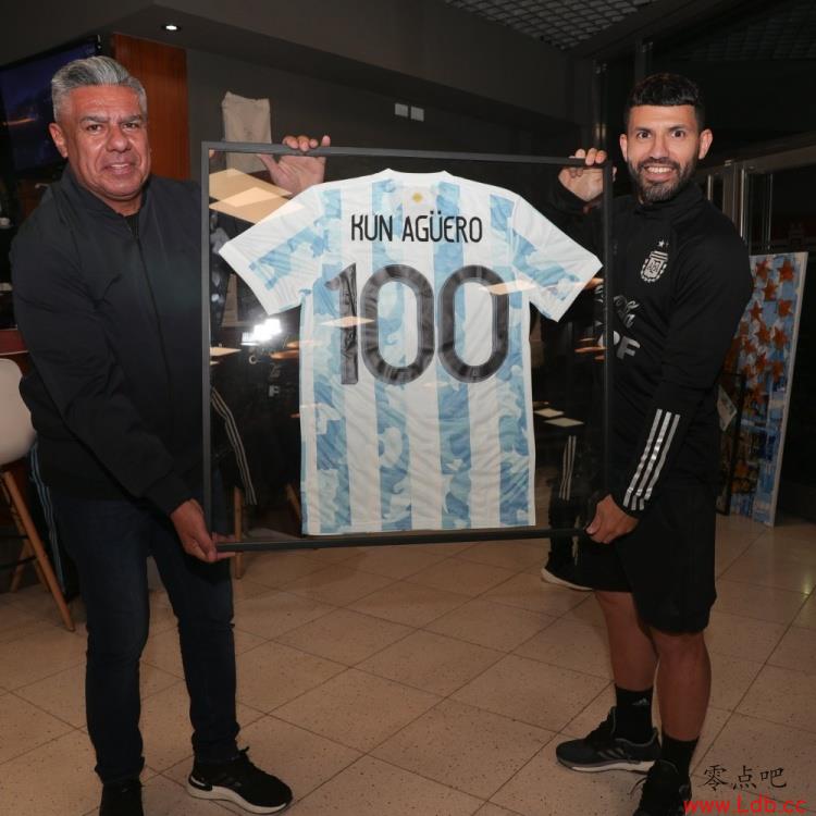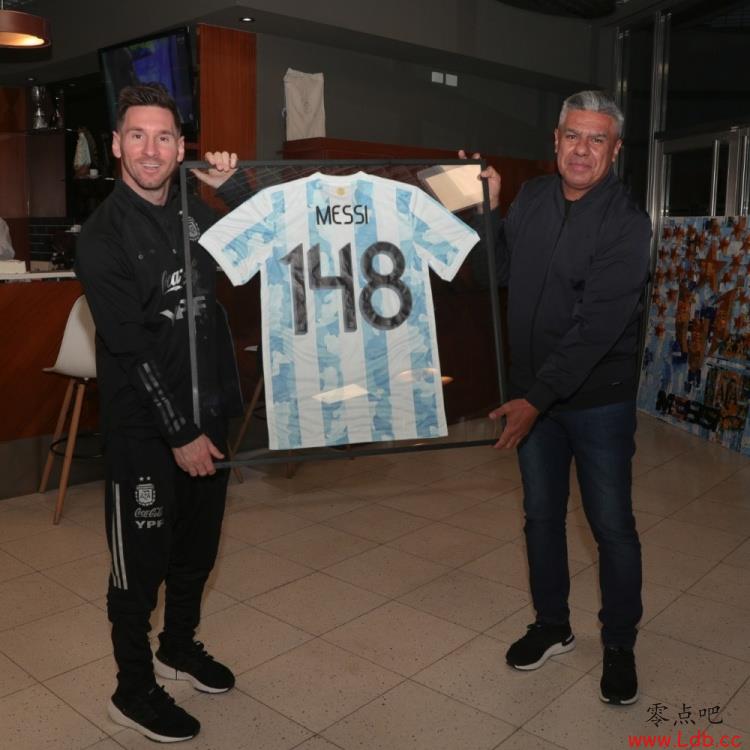 零点吧足球7月2日讯 据阿根廷国家队官推消息,球队为梅西和阿圭罗两人颁发了了国家队出场次数纪录的纪念球衣。