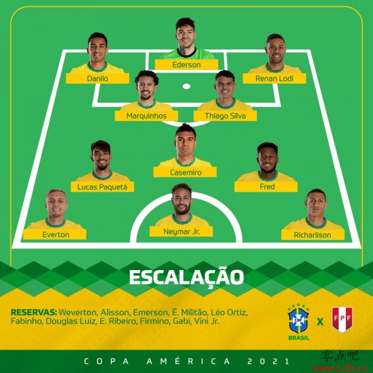 零点吧足球7月6日讯 美洲杯半决赛,巴西vs秘鲁,双方阵容名单已出炉。