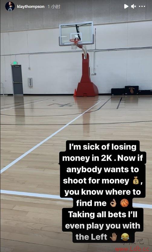 零点吧7月7日讯 今日,勇士球星克莱更新个人社媒,晒出了一张自己在球馆训练的照片,并配文说到:“我真是受够了在2K里输钱了。如果现在有人想来跟我比比投篮(??),你知道在哪能找到我,我甚至可以用左手跟你PK。”