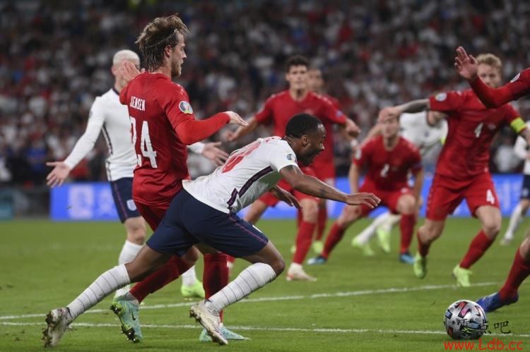 零点吧足球7月8日讯 欧洲杯半决赛,英格兰vs丹麦,加时赛上半场,斯特林突破后在禁区倒地,裁判判罚点球,经VAR回看后维持原判。