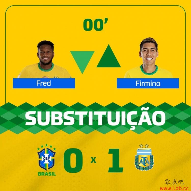 424?巴西半场换下弗雷德,菲尔米诺替补登场