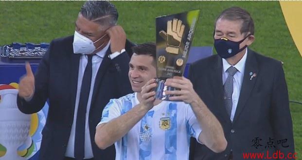 零点吧足球7月11日讯 美洲杯决赛,阿根廷战胜巴西夺冠。门将马丁内斯获得美洲杯最佳门将