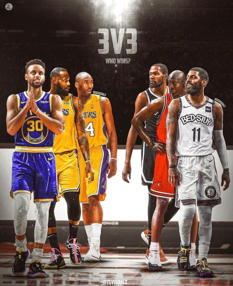零点吧9月14日讯 近日,美媒晒出了一张库里&詹姆斯&科比VS欧文&乔丹&杜兰特的合成图,并配文问到:“半场三对三,谁赢?”