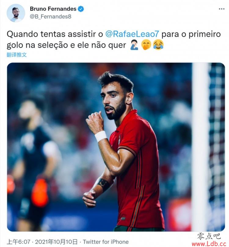 零点吧足球10月10日讯 在北京时间今天凌晨进行的友谊赛中,葡萄牙主场3比0完胜卡塔尔,赛后B费调侃了空门中柱错失国家队处子球的莱奥。