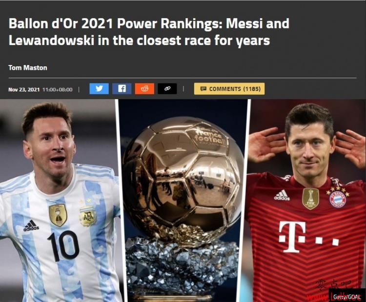 进球网对金球奖候选实力排名:梅西、莱万、若鸟前三,C罗第9