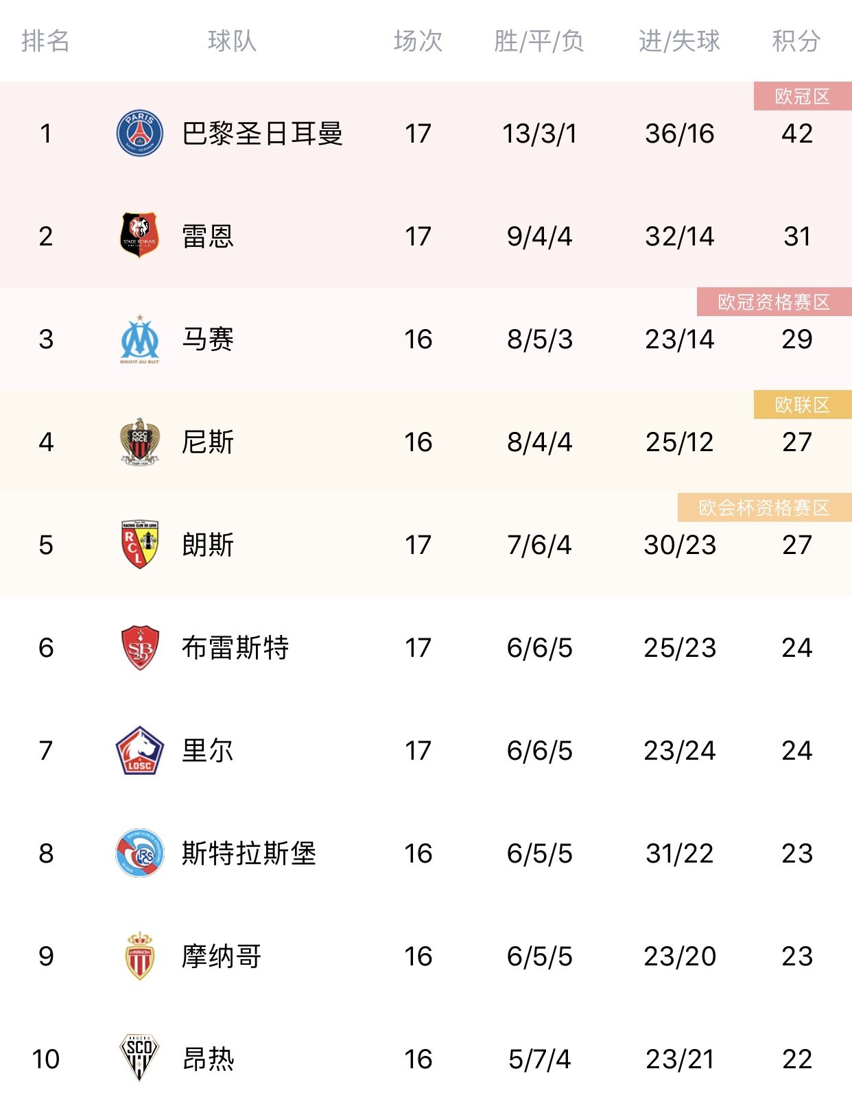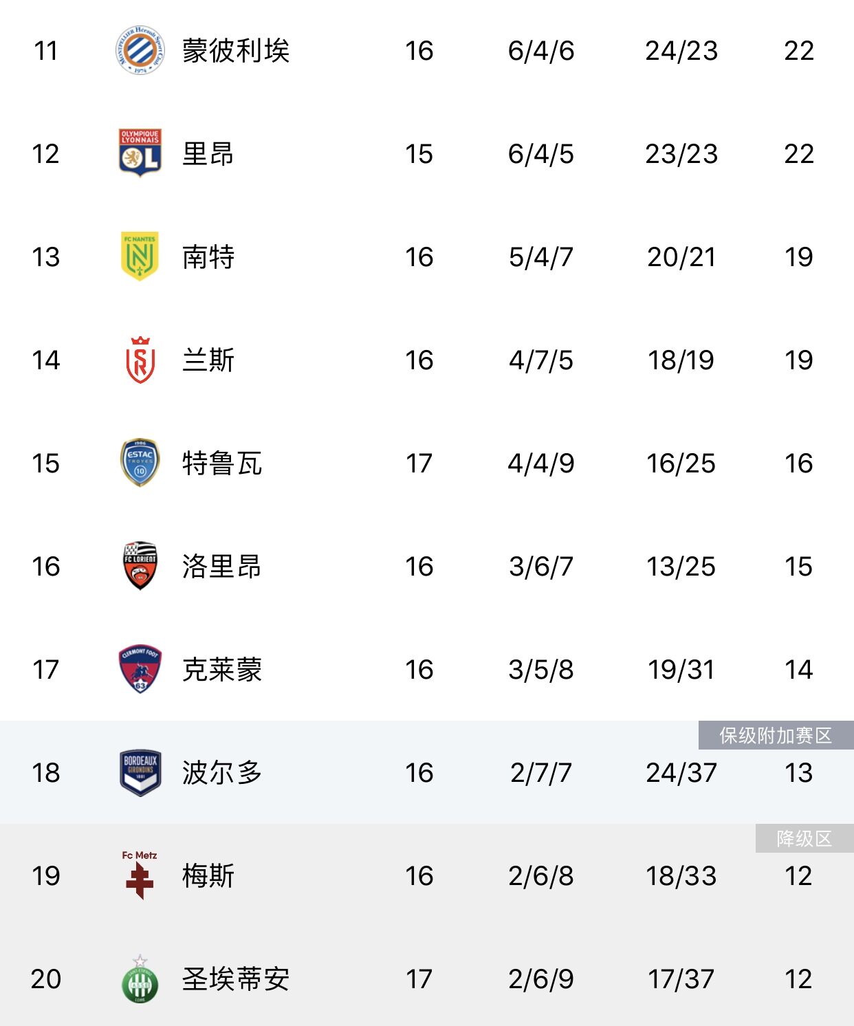 本场比赛后,雷恩暂时升至积分榜第二,圣埃蒂安则位列垫底。