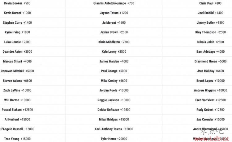 FMVP赔率:布克&字母&保罗前三 杜兰特第4 恩比德&库里并列第6
