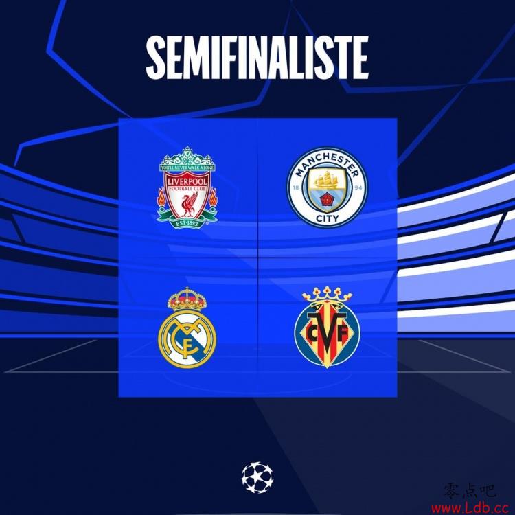 零点吧足球4月14日讯 本赛季欧冠1/4决赛结束,欧冠四强出炉:曼城、利物浦、皇马、黄潜。