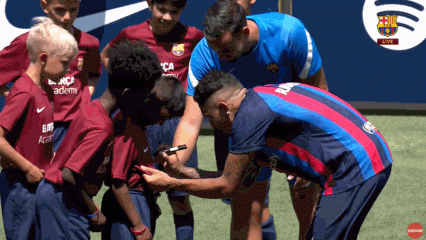 短暂等待后,换上球衣的拉菲尼亚重新入场,与小朋友们抢圈↓