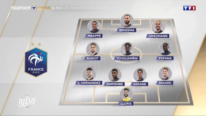 零点吧足球11月14日讯 日前,法媒Telefoot预测了法国世界杯主力阵容,本泽马、姆巴佩先发出战,琼阿梅尼担任主力后腰。