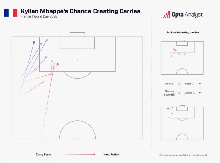 姆巴佩(法国)——5次射门+5次创造机会=10