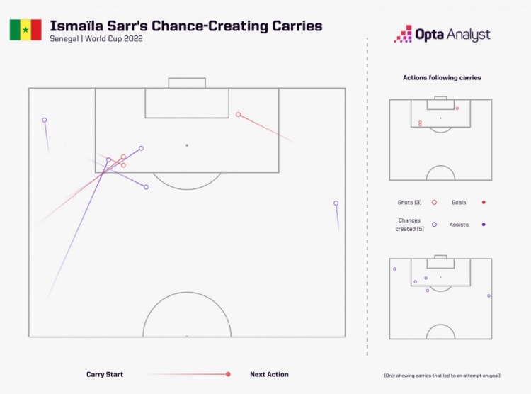 伊斯梅拉-萨尔(塞内加尔)——3次射门+5次创造机会=8