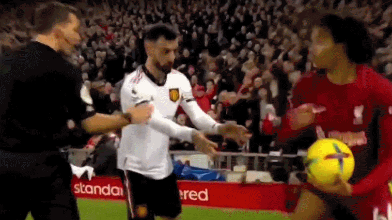 B费推搡边裁,球迷吐槽:如果有人这么对他,B费已经捂脸倒地了