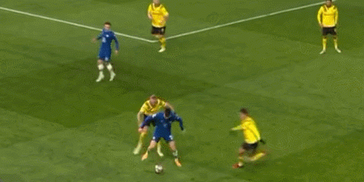 对手出其不意反客为主,蓝军虽反应稍迟,但还好不算太晚。菲利克斯的回撤缓解了局部的人数劣势,也增添了一条通往前场的中转站,他与斯特林的远程连线险些偷袭得手。另一方面,里斯-詹姆斯和奇尔维尔为蓝军开拓了边路走廊,使得中路受阻的他们得以另谋出路。而哈弗茨的伪九号踢法解决了蓝军由守转攻“堵车”的难题,斯特林的进球,正源自德国国脚在前场左肋的运作。