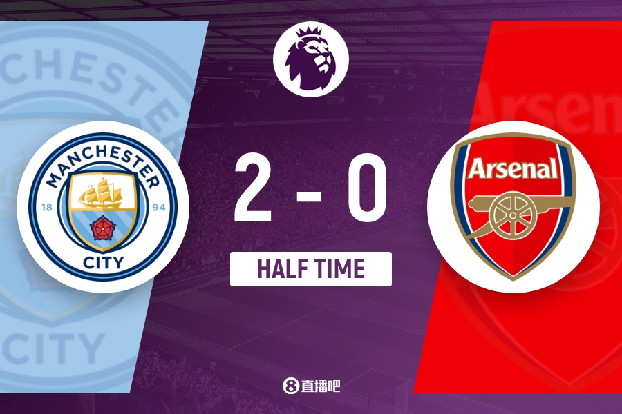 上半场伤停补时2分钟,半场结束,曼城暂2-0阿森纳。