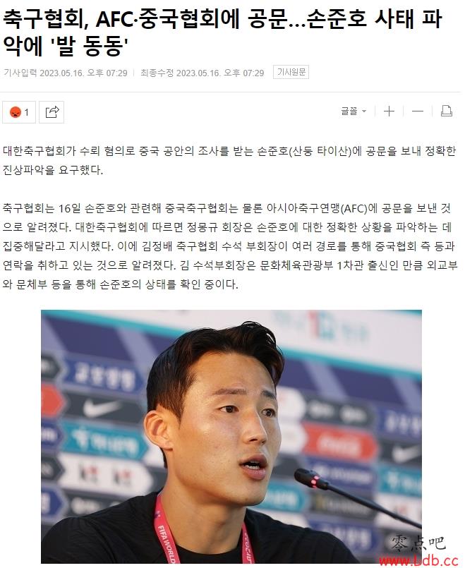 据了解,韩国足协于16日向中国足球协会和亚足联发出公函,询问与孙准浩有关的事宜。韩国足协称,郑梦奎主席指示集中精力了解孙准浩的确切情况,而副主席通过多种途径与中国足协等进行联系,目前正在通过外交部和文体部等渠道确认孙准浩的情况。