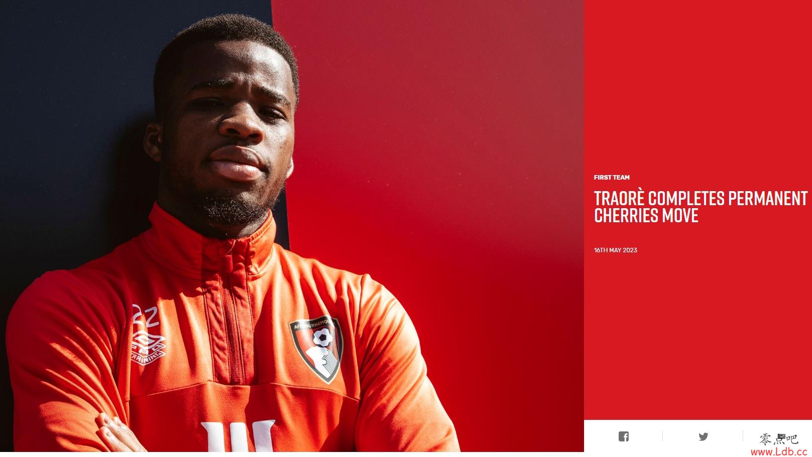 零点吧足球5月16日讯 英超伯恩茅斯官方宣布,正式从萨索洛签下科特迪瓦中场哈梅德-特劳雷,签约至2028年6月。名记罗马诺透露转会费为3000万欧元+浮动。