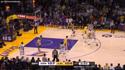 111平进入最后一刻,约基奇左腰单挑浓眉,摇摆着,晃荡着,上篮得手。戈登拦住了勒布朗的投篮,比赛结束。