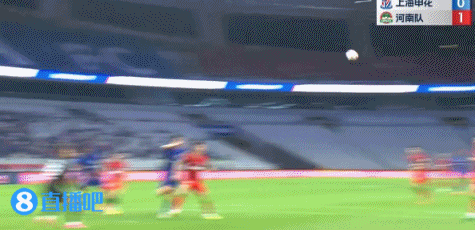 零点吧足球5月28日讯 申花vs河南第82分钟,申花左路传中,河南门将王国明弃门出击,但是没有打到皮球!蒋圣龙头球顶空门,球进了!申花1-1扳平!
