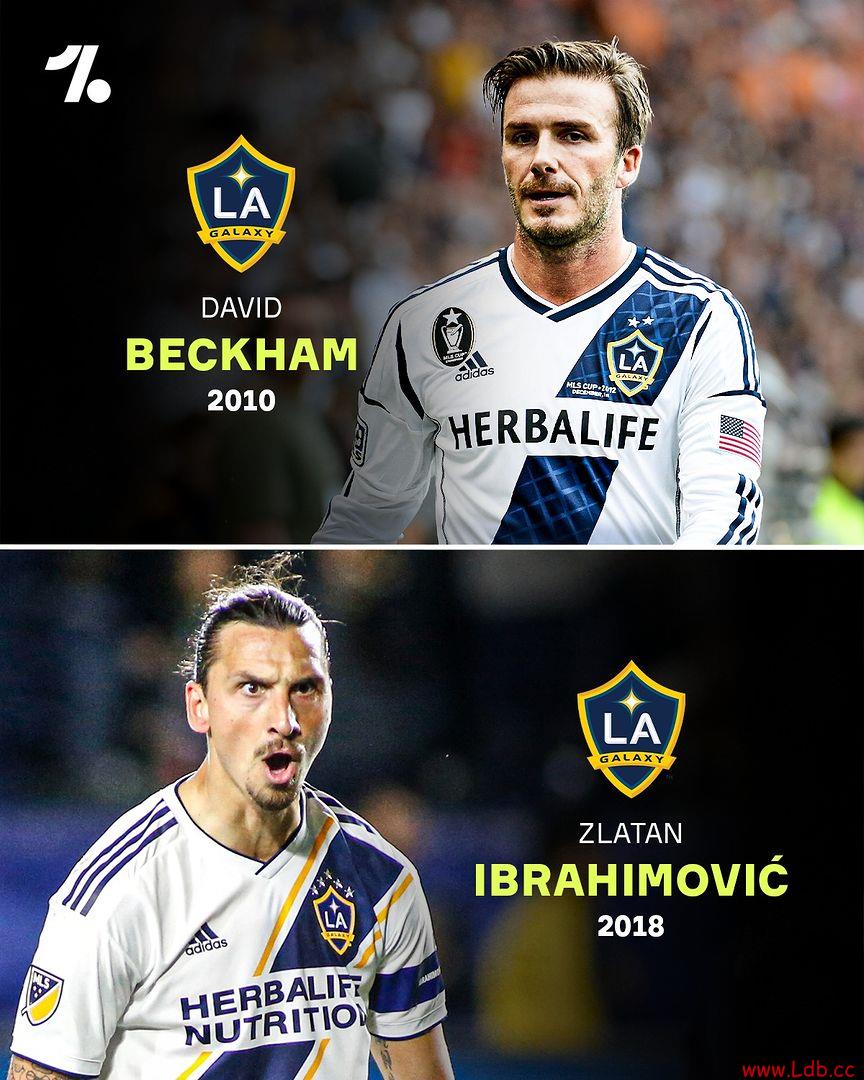 小贝2010年加盟洛杉矶银河,2013年加盟巴黎圣日耳曼;伊布2018年加盟洛杉矶银河,2020年加盟AC米兰。