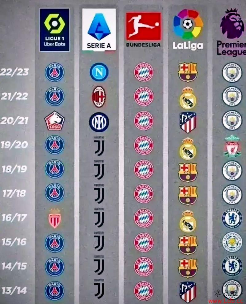 【谁霸榜了?】欧洲五大联赛10年冠军榜单: