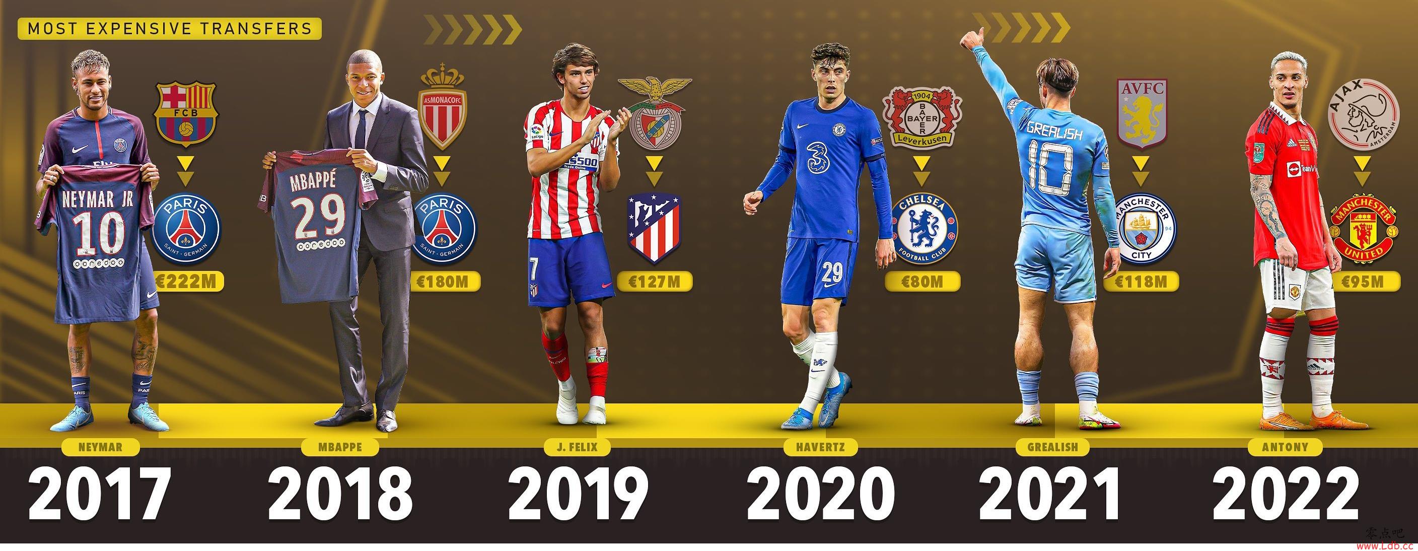 2017 内马尔 巴萨??巴黎 2.22亿欧