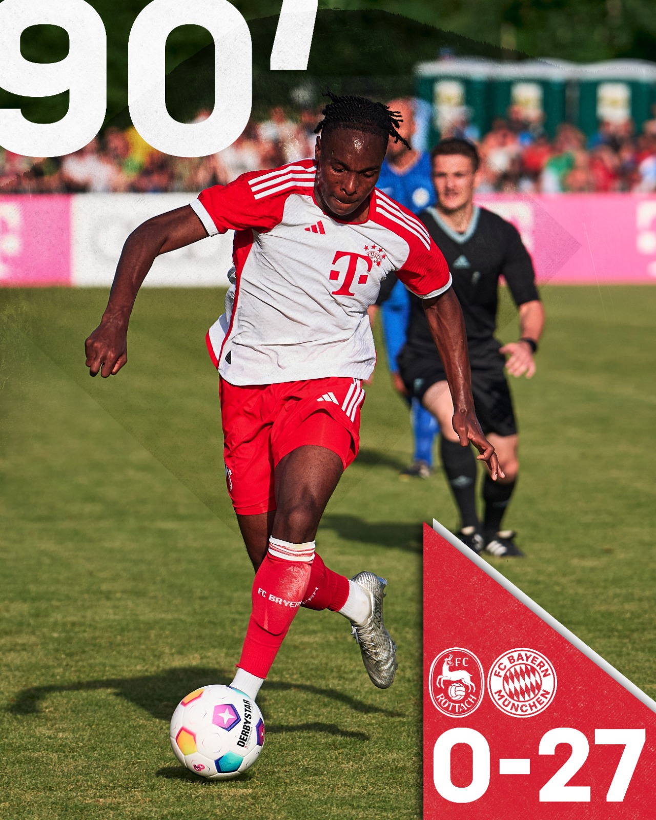 拜仁季前训练首场热身赛,球队27-0屠杀业余球队罗塔赫-埃根。穆西亚拉、萨比策和特尔三人均打进五球。