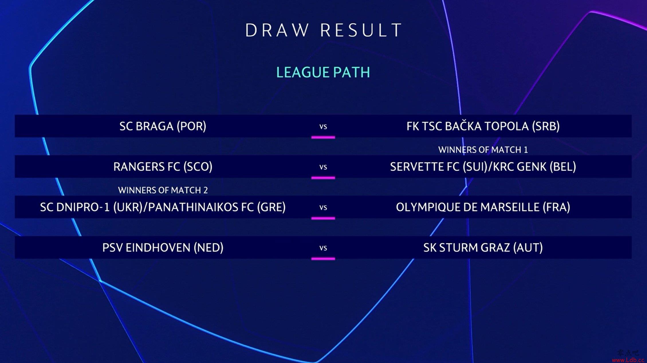 零点吧足球7月24日讯 欧冠附加赛第三轮抽签结果出炉,流浪者、马赛和埃因霍温等球队都将参加。