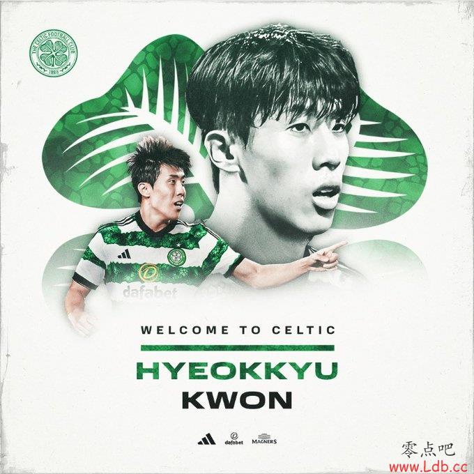 零点吧足球7月24日讯 凯尔特人官方消息,球队签下韩国中场权赫奎,双方签约5年,这是这支苏超豪门今天官宣的第二名韩国球员。