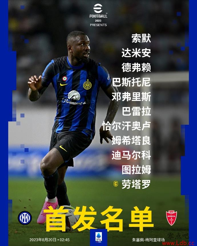 零点吧足球8月20日讯 意甲第1轮,国米主场对阵蒙扎。赛前,官方公布了本场的首发名单。