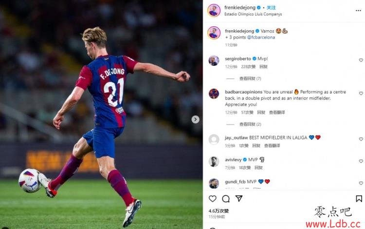 零点吧足球8月21日讯 巴萨在本轮西甲2-0力克加的斯,本场出任中卫的德容表现出色。