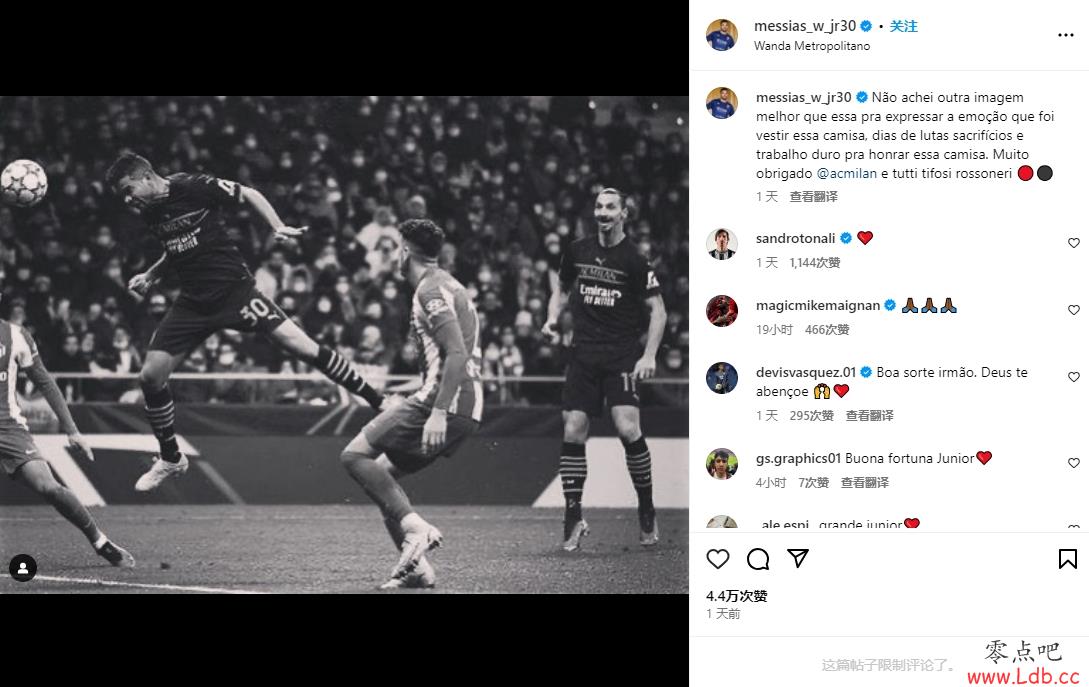 梅西亚斯表示道:“我找不到比这张更好的图片来表达我身穿这件球衣的情感,以及为这件球衣而奋斗、牺牲和辛勤工作的日子了。非常感谢AC米兰和红黑军团球迷们。”