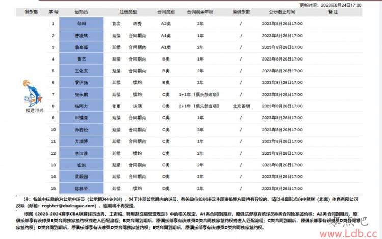 零点吧8月24日讯 今天,CBA官网更新了福建男篮的注册信息。