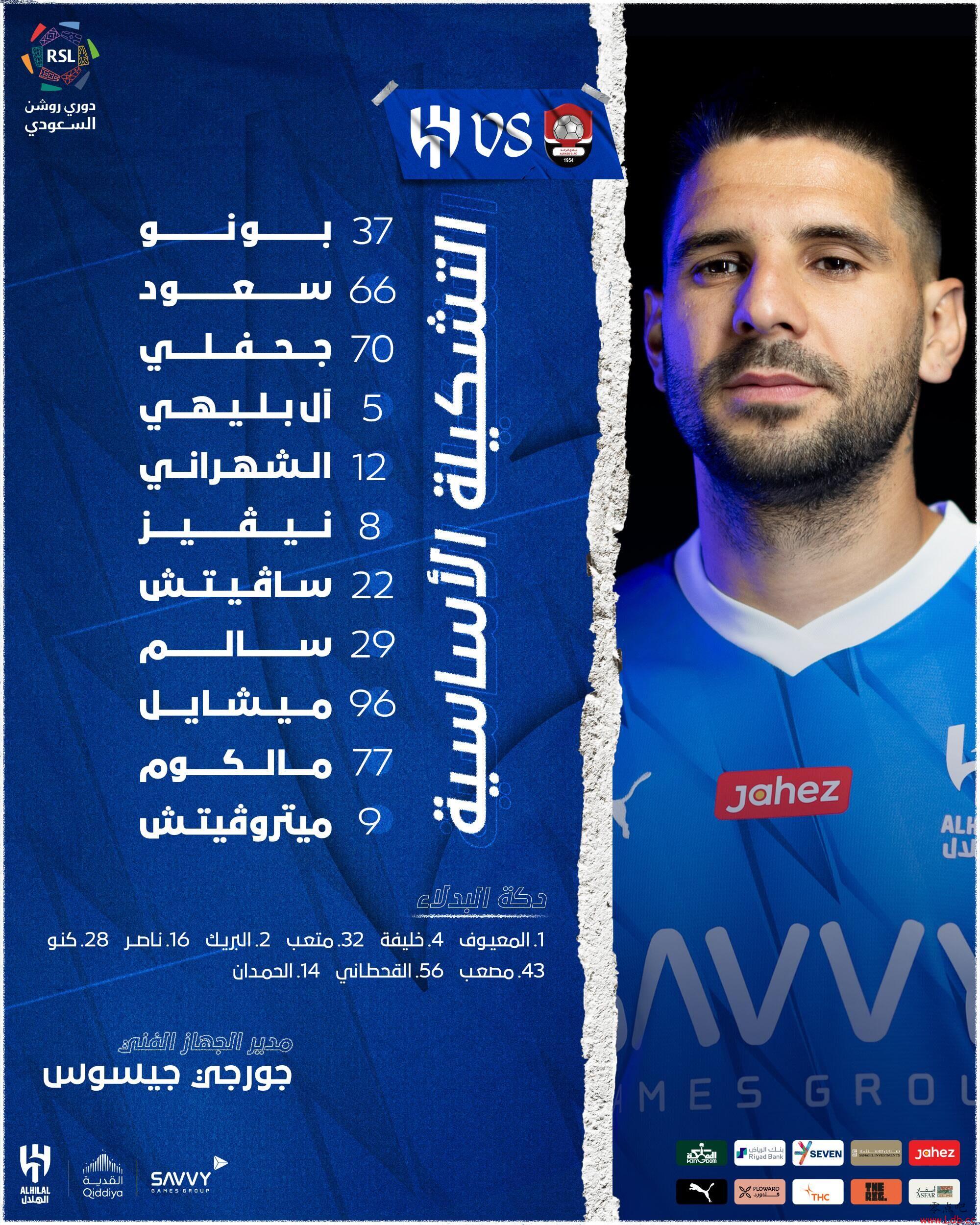 利雅得新月首发:37-布努、66-阿卜杜勒哈米德、70-贾法里、5-布莱希、12-沙赫拉尼、8-鲁本-内维斯、22-米林科维奇、29-萨勒姆-达瓦萨里、96-迈克尔、77-马尔科姆、9-米特洛维奇