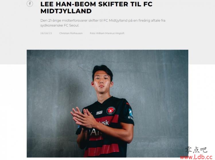 官方:韩国21岁中后卫李汉范加盟丹麦俱乐部中日德兰