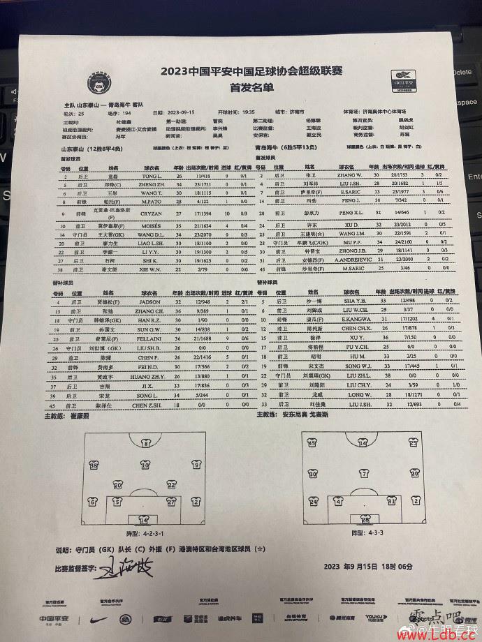 零点吧足球9月15日讯 中超第25轮,山东泰山主场迎战青岛海牛的齐鲁德比焦点战。赛前双方公布了本场比赛的首发阵容。