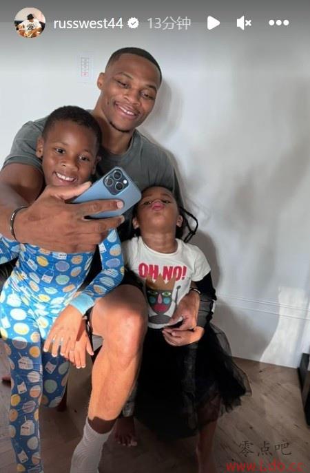 今天,威少更新了INS,晒出了自己和两个孩子的合影。