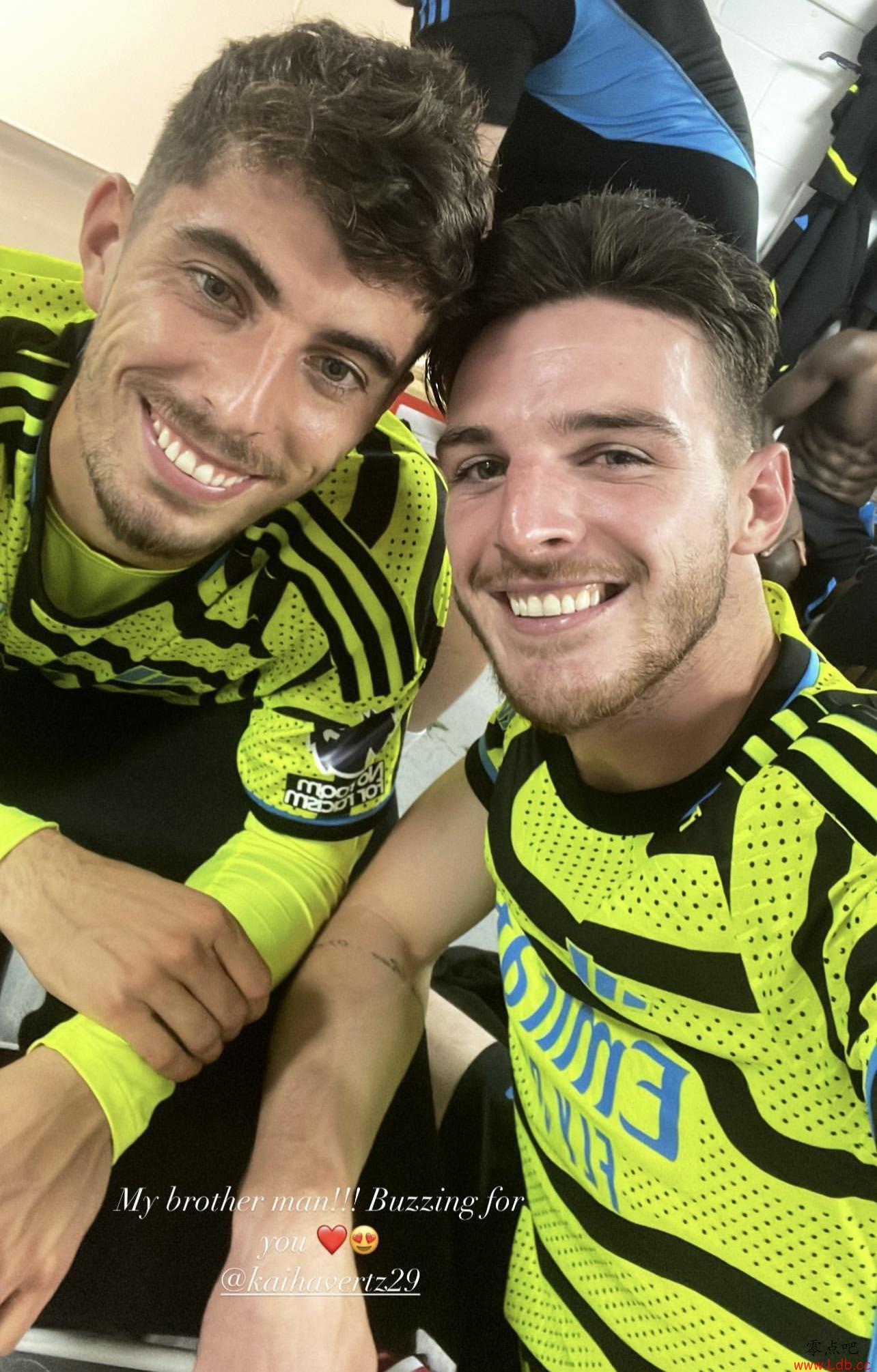 帅??赖斯赛后晒出与哈弗茨合照,二人面带笑容其乐融融