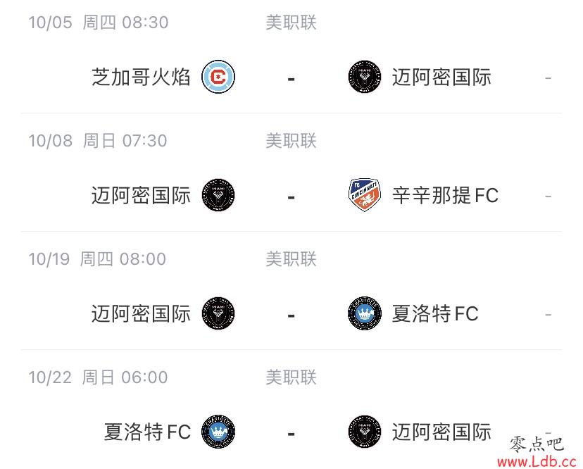 零点吧足球10月1日讯 美职联,迈阿密绝平纽约城。